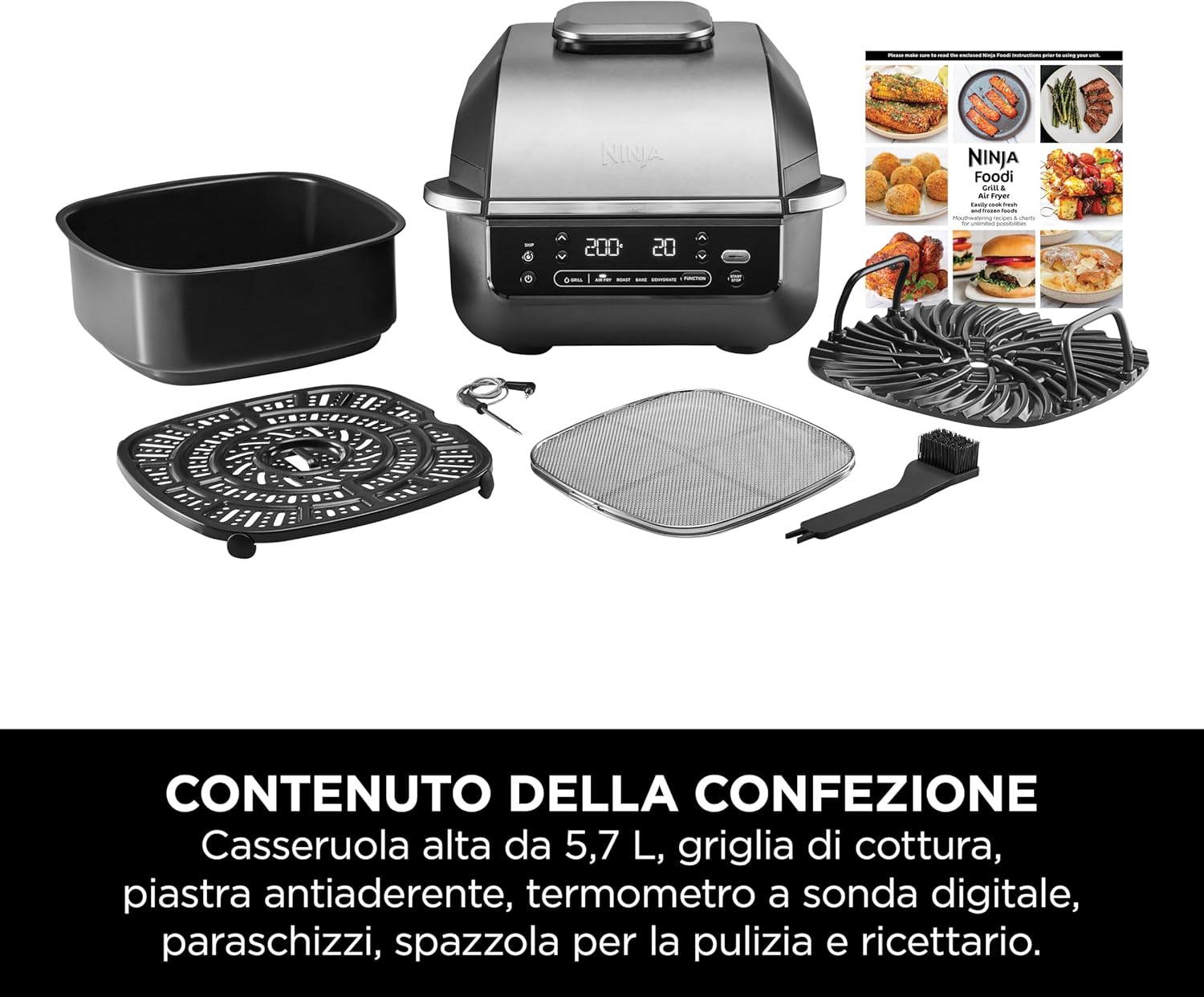 Scopri Ninja Griglia e Friggitrice ad Aria 5 in 1: 5 funzioni di cottura per piatti croccanti e saporiti con meno grassi e massimo gusto